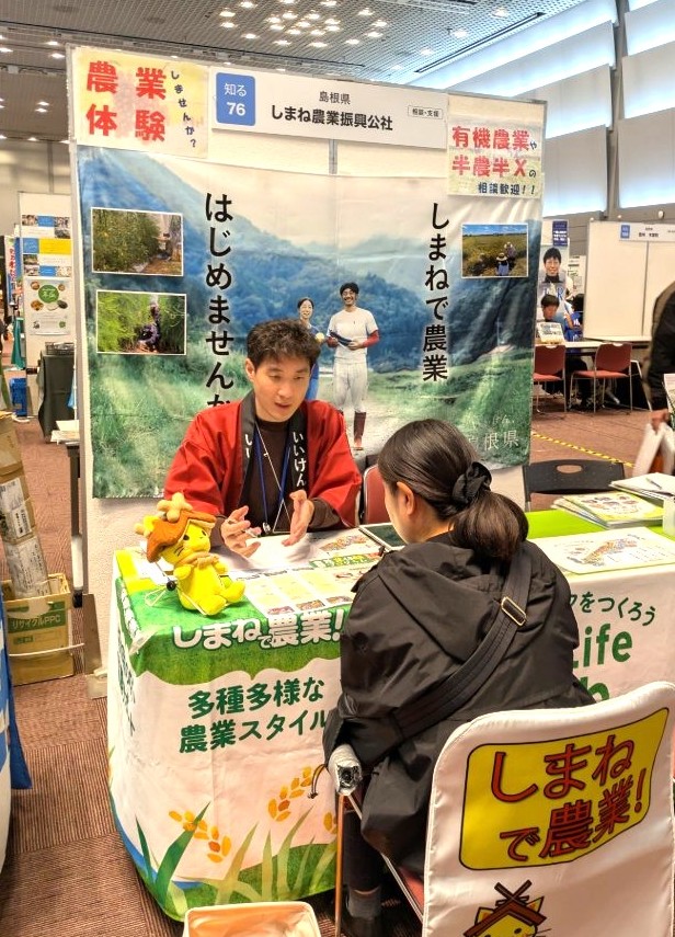 当公社では、東京・大阪等全国の農業フェア等での「島根県ブース」の設置を行っております。こうした相談会やフェアにて、島根県に農業で就業したい方、U・Iターンしたい方の相談を受け付けております。